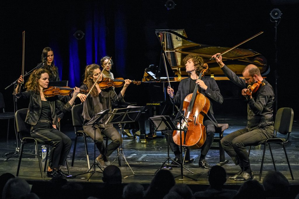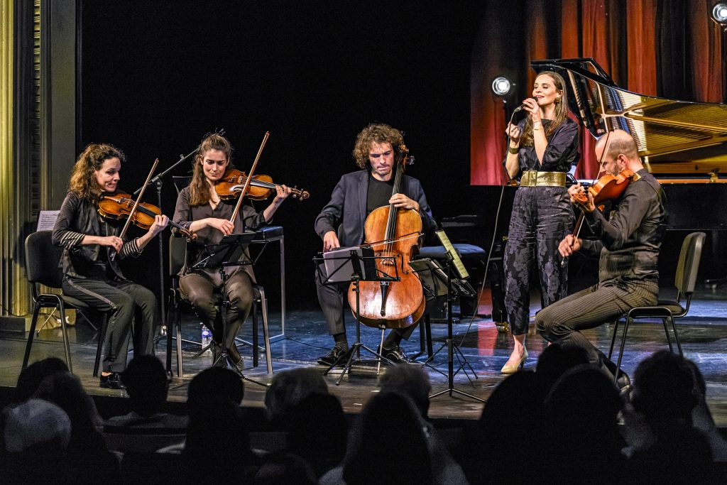 Le programme convoquait Schubert, compositeur de la nuit par excellence, auquel répondaient Lyapounov, Lourié, Auerbach, Schoenberg et Pärt. Piano (Jodyline Gallavardin), alto (Maud Chauvet), violoncelle (Pierre Fontenelle) et quatuor à cordes ont tissé un dialogue d’une grande cohérence, porté par la voix sensible de Noëmi Waysfeld, récitante et chanteuse. Les textes de Baudelaire, Céline, Goethe, Claudius et Proust ouvraient des haltes poétiques entre les œuvres. La Nuit transfigurée de Schoenberg et le dépouillement méditatif de Für Alina de Pärt ont offert les moments les plus suspendus d’un concert d’une profonde beauté. En rappel, Noëmi Waysfeld a interprété « Les sanglots longs » de Charles Trenet, refermant avec émotion une semaine d’automne musical à Dinard.